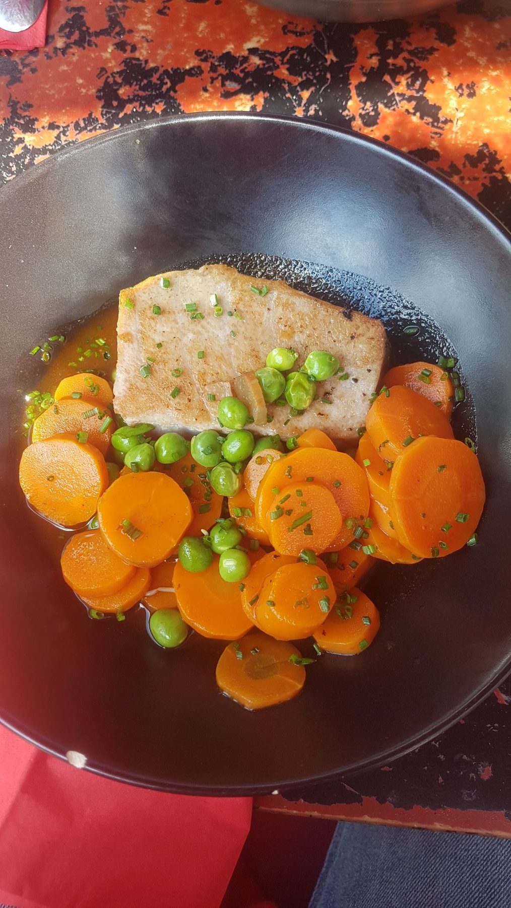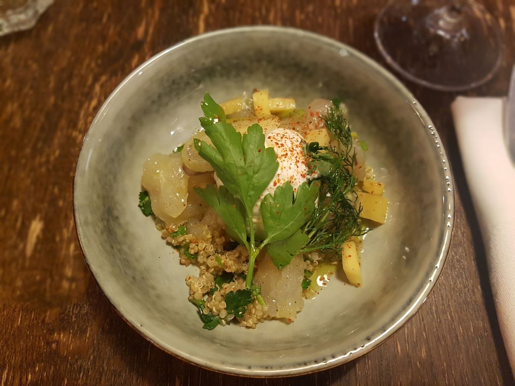 La carte change tous les mois, et les création sont originales et surprenantes. Je vous recommande le menu dégustation Balade colorée, avec 2 entrées, 1 plat et 1 dessert. A noter que les plats pris dans les menus sont forcément plus petits que les plats proposés à la carte, mais c’est une très très bonne option pour tester plusieurs plats et plusieurs créations.
